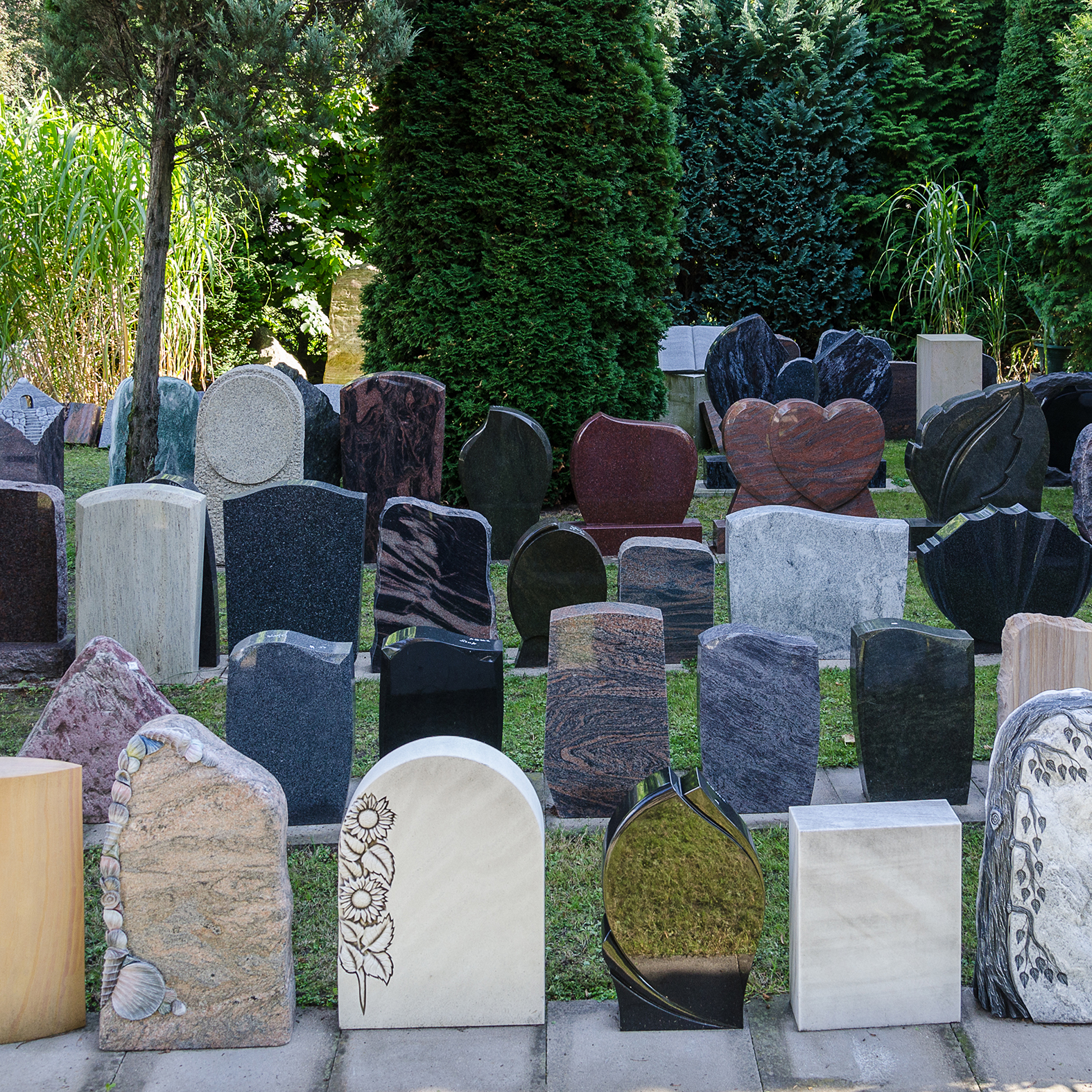 In unseren Ausstellungen in Teltow und Kleinmachnow sehen Sie zahlreiche Grabsteine und Grabplatten. Vom weichen Sandstein über soliden Granit bis zu edlen Marmor - die Auswahl ist groß.